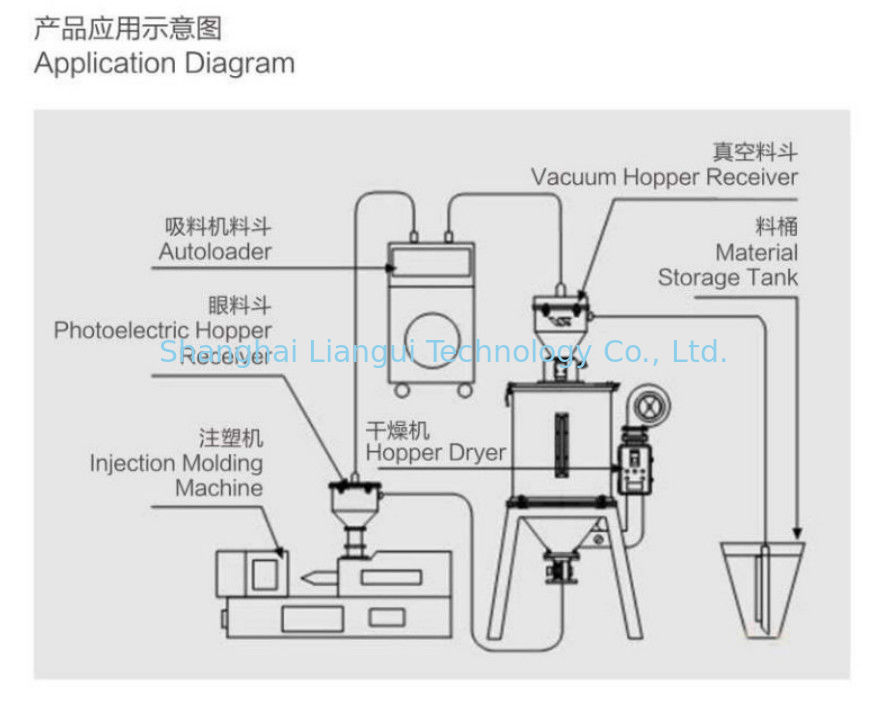 호퍼 드라이어는 주로 피랙틱 재료 건조에 적용됩니다. 허풍은 생산 수율을 향상시키기 위한 건조 효율을 향상시키기 위해 심지어 뜨거운 공기 흐름을 획득하는 모든 습식 재료를 말리는데 사용됩니다 ; 제품과 삭감하는 생산비의 보증하는 품질. 6-400 크그스로부터의 호퍼 용적 범위는 선택으로 제공될 수 있습니다. 배출 공기 필터 (선택) 원통형 거르개 먼지가 배출하는 것으로부터 주변 지역에 효과적으로 공기를 포함합니다. 허풍 순환을 가속하기 위해 반쯤 닫힌 순환되는 루프로부터 허풍을 만들기 위한 허풍 리사이클러 (선택은) 최고 30%를 구하는 에너지를 달성하기 위한 히팅 시간을 줄입니다.
