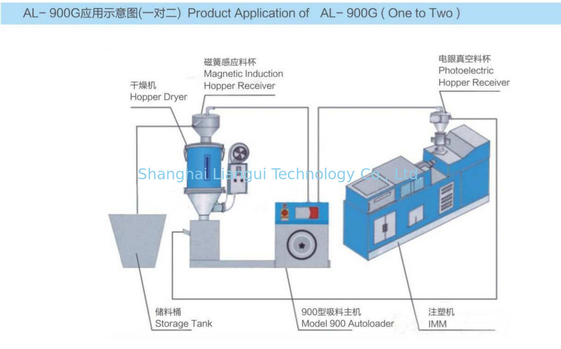 AL 일련 분리할 수 있는 자동 로더는 수신기들이 인 원료, 주제어 장치들과 소재 호퍼의 장거리 배달에 적합한 채 다중 조합 컨베잉에 하나를 달성대서 2개 메뚜기 수신기들 또는 위에서 말하 일치할 수 있는 안전성과 편리한 목적을 위해 개별적으로 설계됩니다. 그것은 재료 수송용량을 강화합니다 매우 800 킬로그램 / hr. 최대 부하량은 거리는 10m입니다. AL700G/800G는 상관적 기계 조합의 조합에 적합합니다. 900G는 1 내지 2 기계와 다른 다중 변화 방식의 조합에 적합합니다, 모든 모델들이 고객의 다양한 요구에 만족하는 장거리와 용이한 작동 에 물질을 운반하는데 적합합니다.